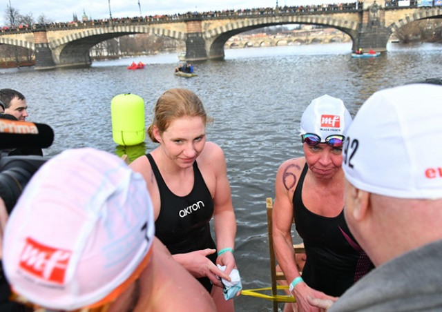 В четверг, 26 декабря, в центре Праги состоялся традиционный рождественский заплыв «Мемориал Альфреда Никодема». На берегу Влтавы напротив Национального театра собрались 430 «моржей» из Чехии, Словакии, Бельгии, России, Великобритании, Казахстана, Польши, Гонконгаи других стран. Это рекордное число участников за 72-летнюю историю акции.Быстрее всех (9 минут и 12 секунд) главную дистанцию в 750 метров преодолела пловчиха Ленка Штербова, которая в 16 лет переплыла пролив Ла-Манш.Самым возрастным участником соревнования стала 89-летняя Божена Черна.По словам организаторов, температура воздуха составляла 4,7°C. В воде было теплее -5,6°C. Участники соревновались на трех дистанциях — 100, 300 и 750 метров.Отметим, ежегодное соревнование названо в честь Альфреда Никодема — первого чеха, сумевшего переплыть Ла-Манш и главного популяризатора спортивного зимнего плавания в Чехословакии.За 73 года существования акции "моржи" столкнулись с самым серьезным морозом в 1946 году. Тогда температура воздуха составляла -25 градусов Цельсия. Заплыв пришлось отменить, поскольку организаторы не смогли прорубить лед на всем маршруте - вода сразу замерзала.